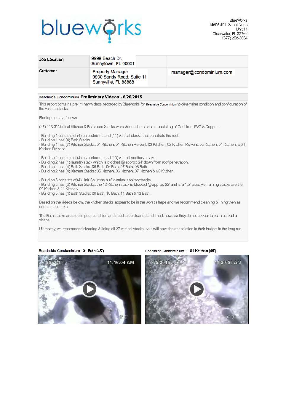 Blue Works Florida video pipe inspection will internally inspect plumbing using Pipe Inspection Cameras to evaluate & map piping condition & configuration for restoration.